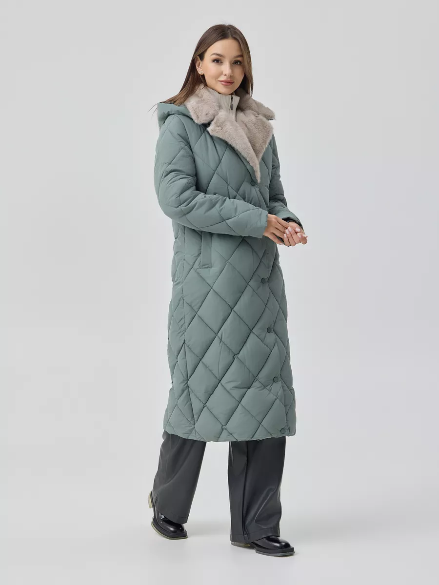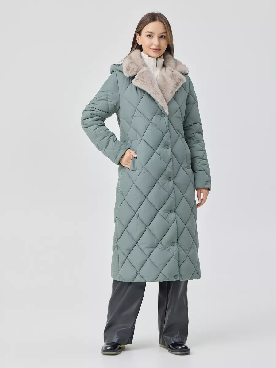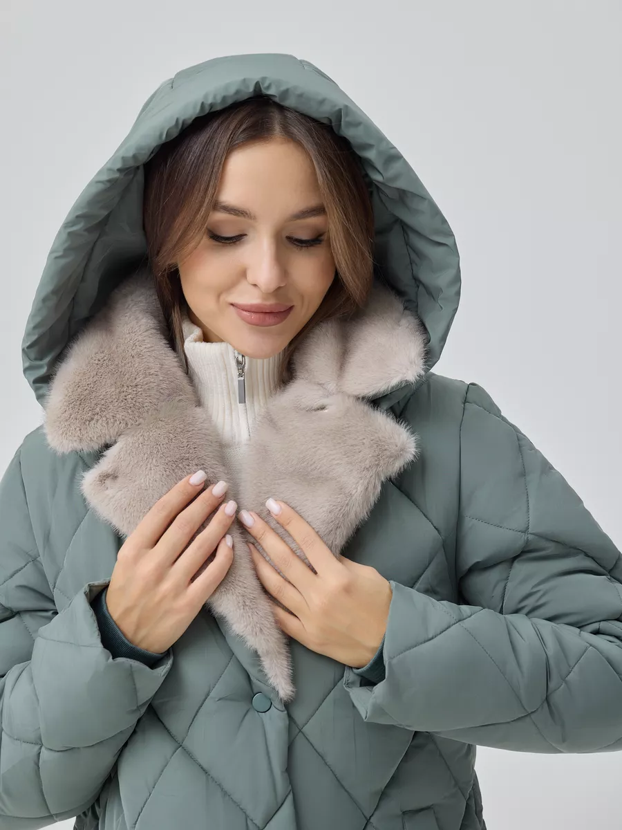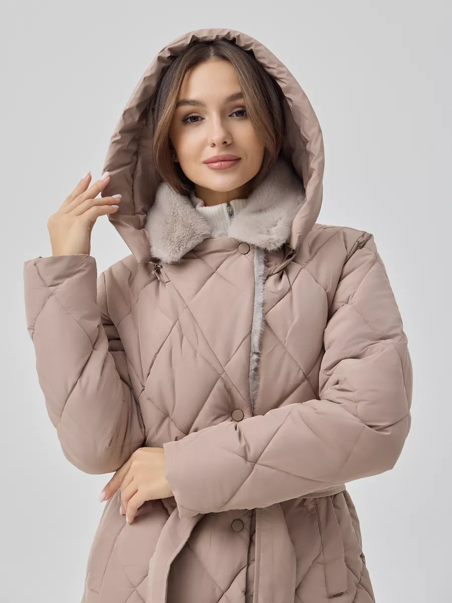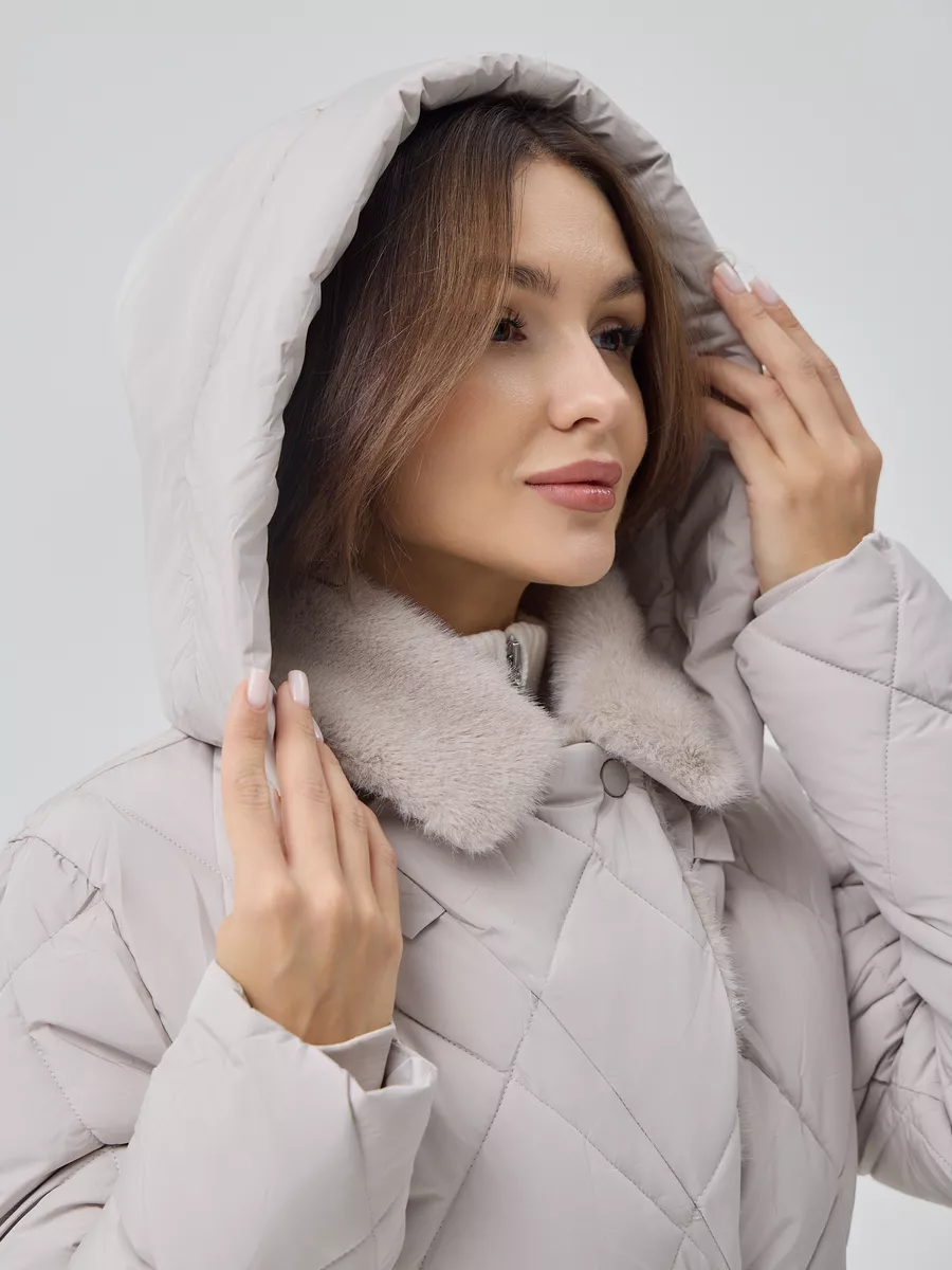 Пуховик женский приталеный с воротником и капюшоном