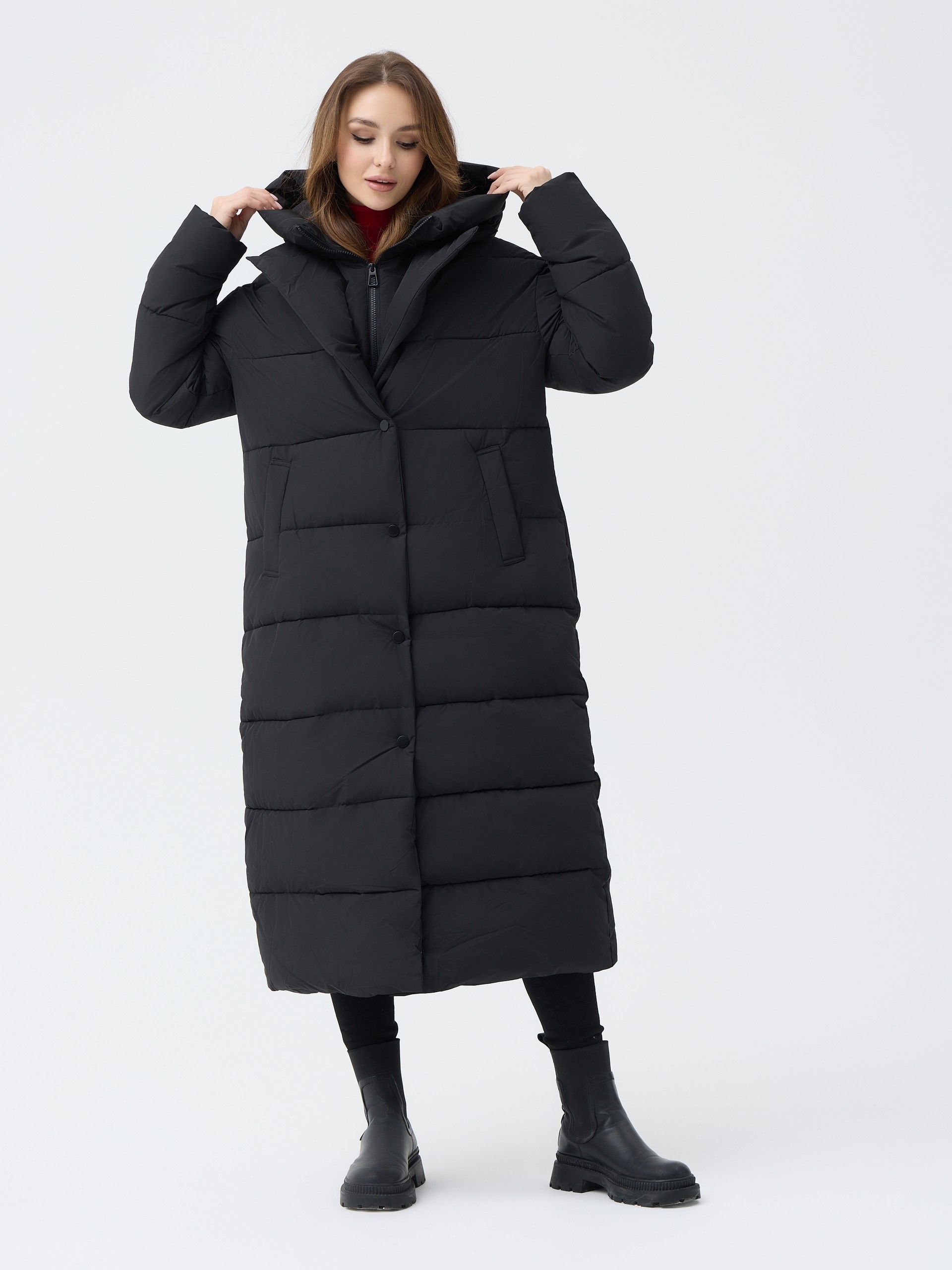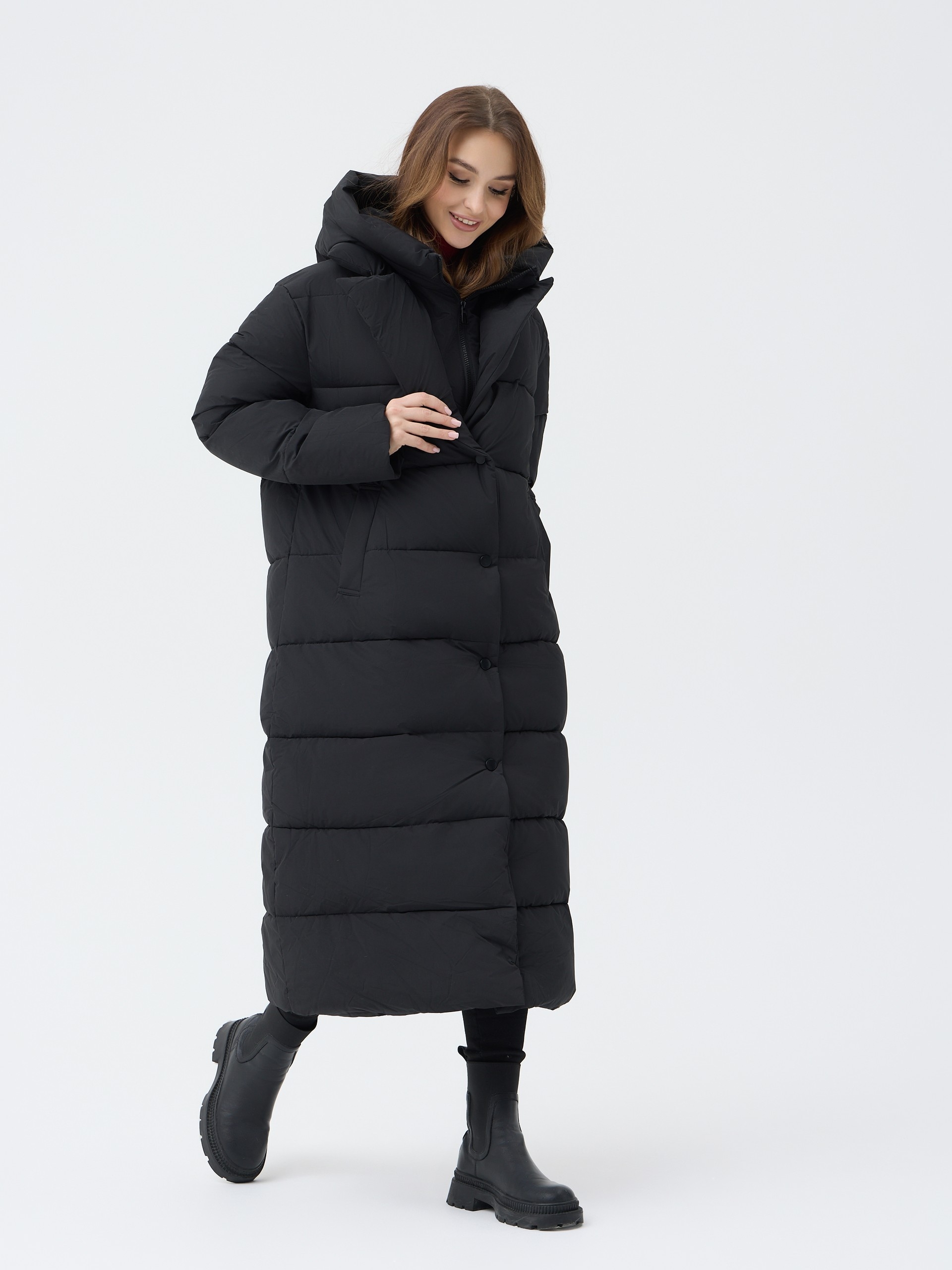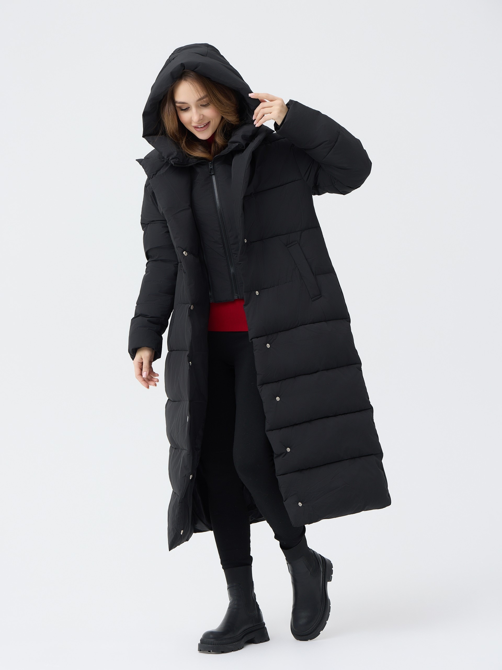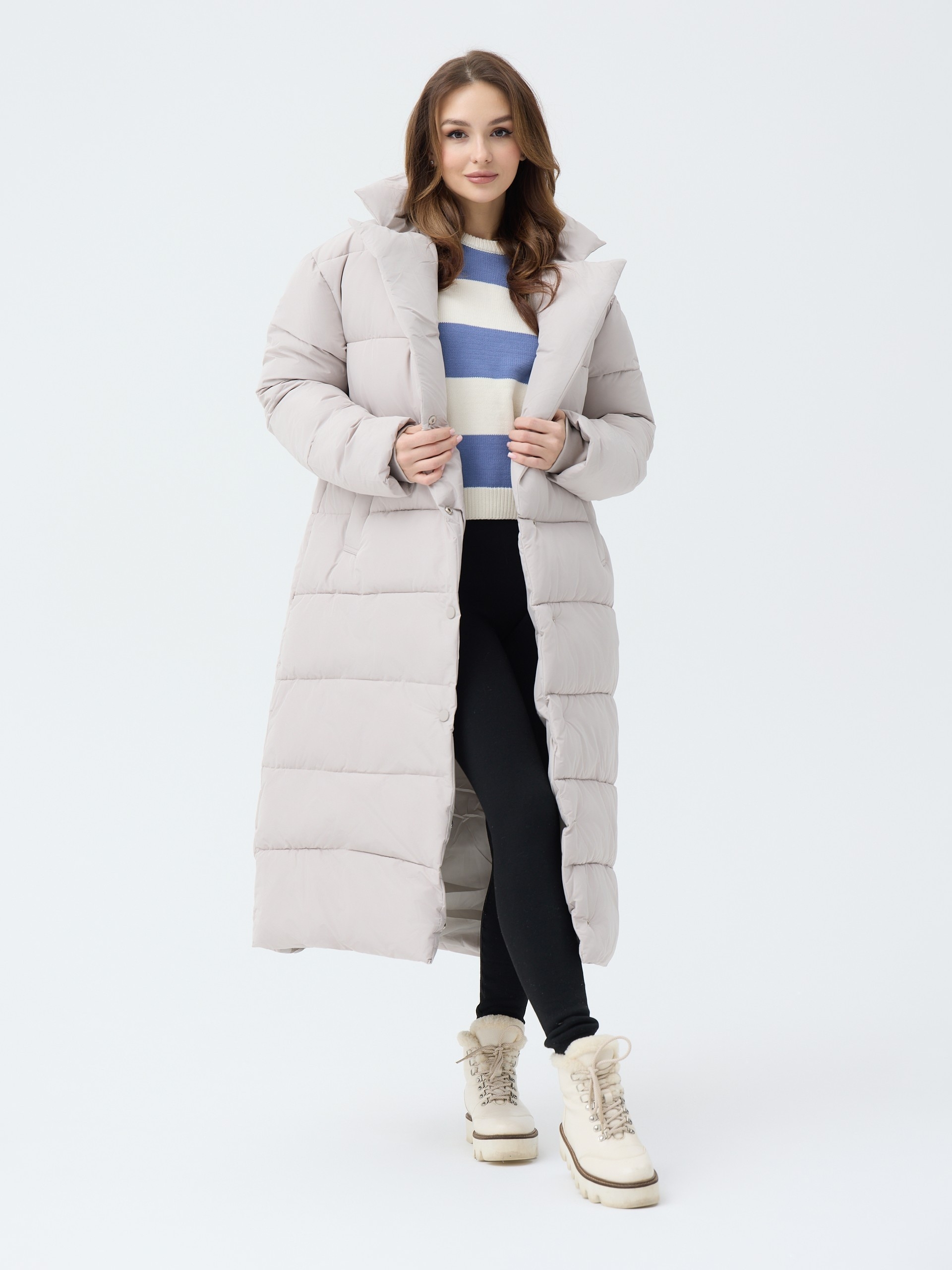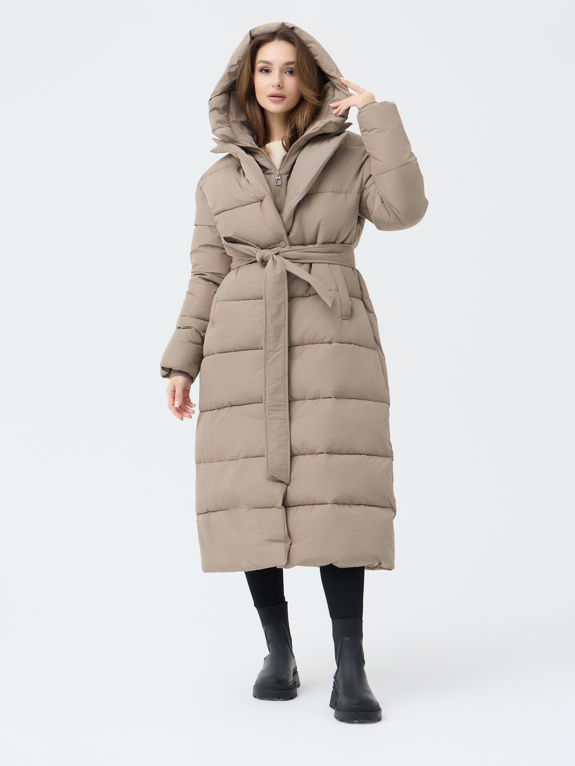 Пуховик женский приталеный с воротником и капюшоном